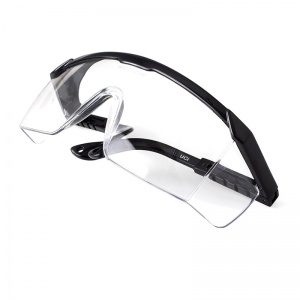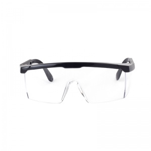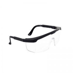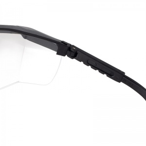 • Clear safety glasses with integrated side shields and a nylon frame